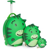 Tiny Trekker Kids Luggage Travel Dinosaur Suitcase Holiday Trolley Lightweight – Green